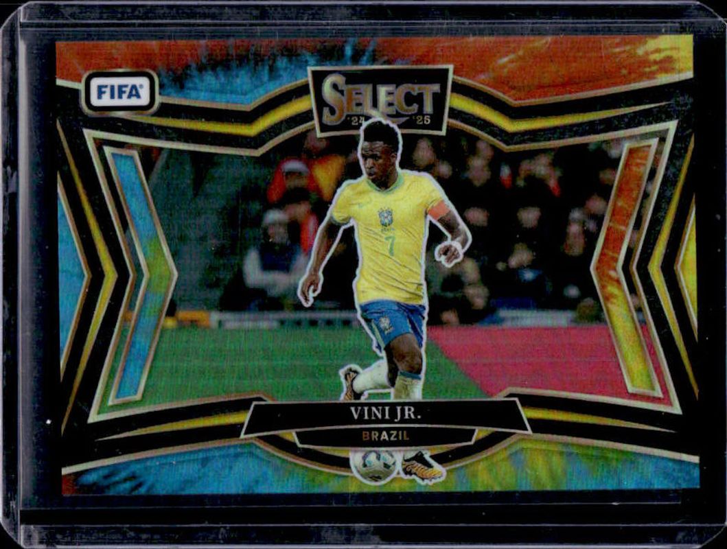 The Vinicius Jr. 2024 Select FIFA #214 Field Level Tie-Dye /25 card is 1 of 117 Vinicius Jr.'s card variations in the 2024 Select FIFA set being tracked by Sports Card Investor, including Artistic Impressions, Field Level, Field Level Blue, Field Level Blue Lazer, and Field Level Checkerboard.