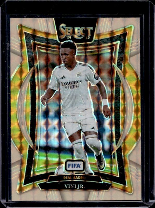 The Vinicius Jr. 2024 Select FIFA #4 Terrace Orange Fluorescent /125 card is 1 of 117 Vinicius Jr.'s card variations in the 2024 Select FIFA set being tracked by Sports Card Investor, including Artistic Impressions, Field Level, Field Level Blue, Field Level Blue Lazer, and Field Level Checkerboard.