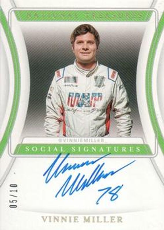 Vinnie Miller 2020 National Treasures NASCAR #SS-VM Social Signatures /25 RAW Price Guide