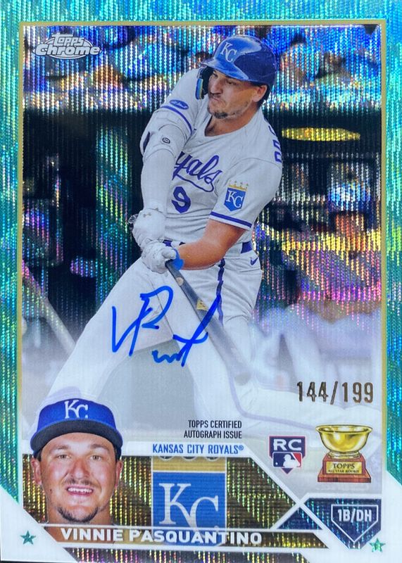 Auctions Ending Soon for Vinnie Pasquantino 2023 Topps Chrome #RA-VP Rookie Autographs - Aqua Wave Refractor /199 RAW