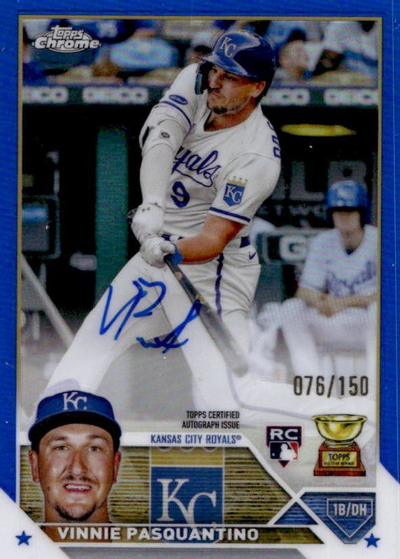 2023 Topps Chrome Vinnie Pasquantino Rookie Auto Blue Refractor /150 RC #RA-VP