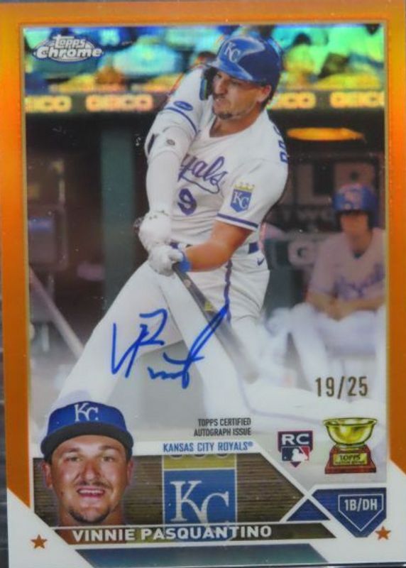 2023 Topps Chrome Orange Refractor Vinnie Pasquantino Royals RC Rookie AUTO /25