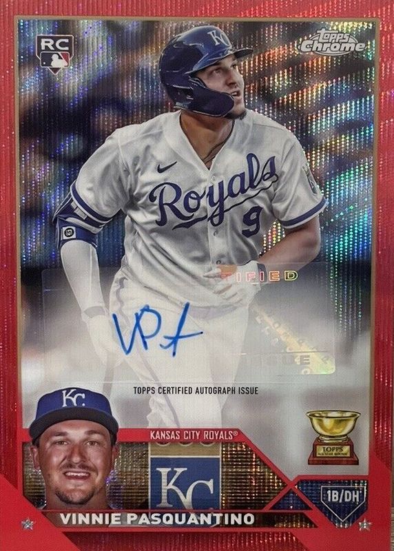 Auctions Ending Soon for Vinnie Pasquantino 2023 Topps Chrome Update #AC-VP Autographs - Red Wave Refractor /5 Rookie RAW