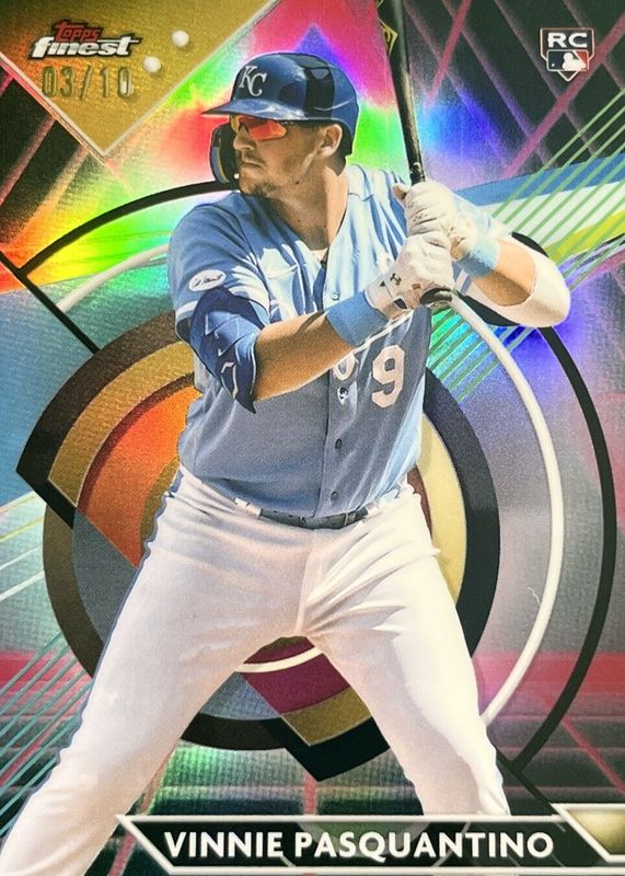 This card is 1 of 20 Vinnie Pasquantino's card variations in the 2023 Topps Finest set being tracked by Sports Card Investor, including Base, Refractor, Gold Mini-Diamond Refractor /50, Gold Refractor /50, and Orange Refractor /25.