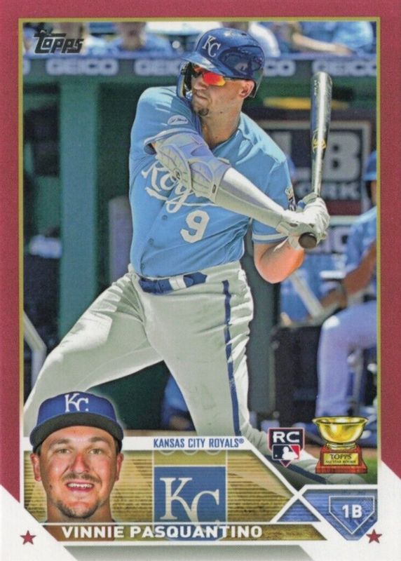 This card is 1 of 18 Vinnie Pasquantino's card variations in the 2023 Topps set being tracked by Sports Card Investor, including Base, Gold Foil, Rainbow Foil, Royal Blue, and Gold /2023.