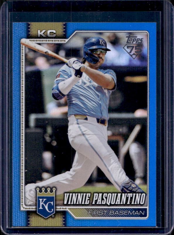 The Vinnie Pasquantino 2026 Topps #223 Blue Rainbow Foil /150 card is 1 of 67 Vinnie Pasquantino's card variations in the 2026 Topps set being tracked by Sports Card Investor, including Base, Aqua Holo Foil, Aqua Rainbow Foil, Diamante Foil, and Holo Foil.