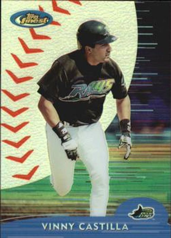 The Vinny Castilla 2000 Topps Finest #215 Refractor /1000 card is 1 of 3 Vinny Castilla's card variations in the 2000 Topps Finest set being tracked by Sports Card Investor, including Base, and Gold Refractor /100.