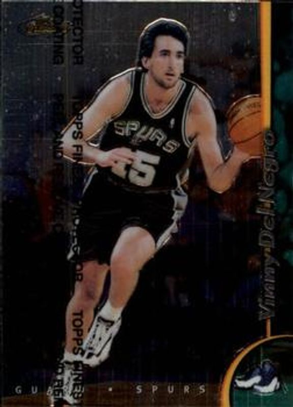 The Vinny Del Negro 1998 Topps Finest #113 Base card is 1 of 4 Vinny Del Negro's card variations in the 1998 Topps Finest set being tracked by Sports Card Investor, including Base - No Coating, Refractor, and Refractor - No Coating.