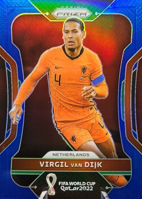 PANINI PRIZM FIFA WORLD CUP 2022 VIRGIL VAN DIJK /299 BLUE REFRACTOR NETHERLANDS