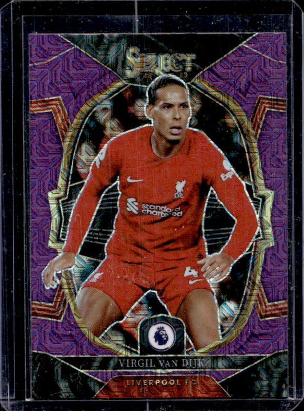 Virgil van Dijk 2022 Select Premier League #60 Purple Mojo RAW Price Guide