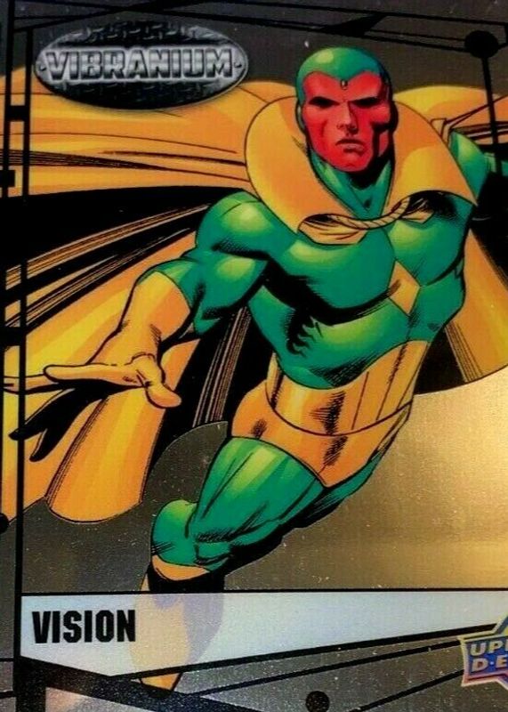 This card is 1 of 6 Vision's card variations in the 2015 Upper Deck Marvel Vibranium set being tracked by Sports Card Investor, including Raw Vibranium, Molten Vibranium /299, Refined Vibranium /99, Radiance Vibranium /50, and Vibranium Bar /5.