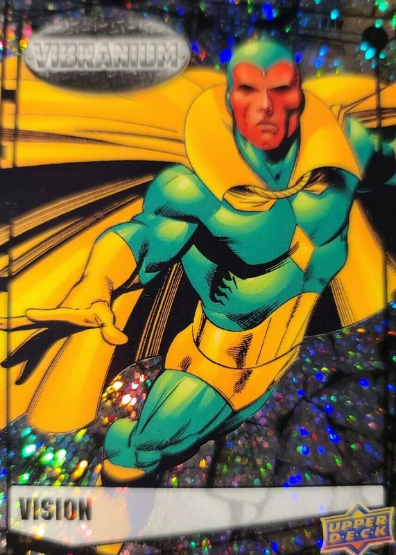 This card is 1 of 6 Vision's card variations in the 2015 Upper Deck Marvel Vibranium set being tracked by Sports Card Investor, including Base, Molten Vibranium /299, Refined Vibranium /99, Radiance Vibranium /50, and Vibranium Bar /5.