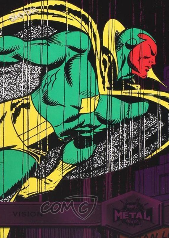 This card is 1 of 18 Vision's card variations in the 2021 Skybox Marvel Metal Universe Spider-Man set being tracked by Sports Card Investor, including Grandiose, Grandiose (High Series), Light FX Gold, Light FX Gold (High Series), and Light FX Yellow.