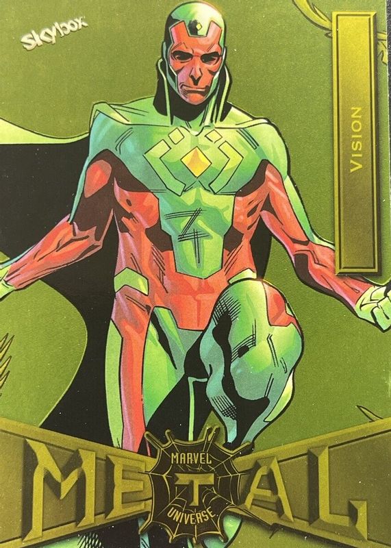 The Vision 2021 Skybox Marvel Metal Universe Spider-Man #94 Light FX Yellow card in Raw condition has not changed in price in the last 30 days and was last sold for $2.00 .