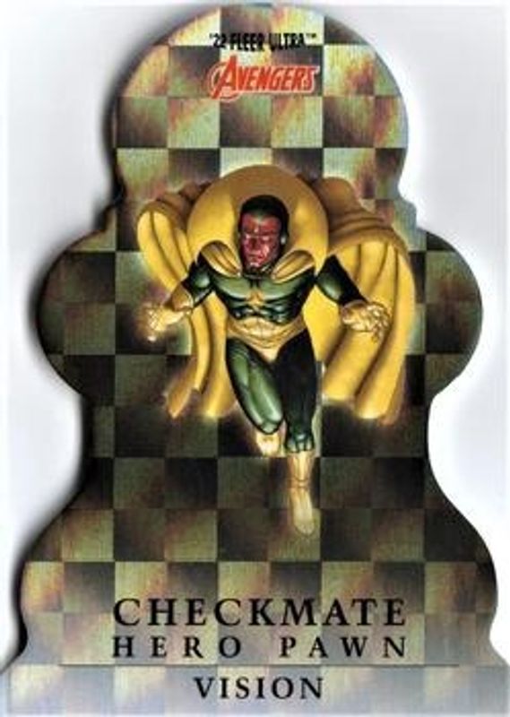 The Vision 2022 Fleer Ultra Avengers #CP-4 Checkmate card is 1 of 53 Vision's card variations in the 2022 Fleer Ultra Avengers set being tracked by Sports Card Investor, including #114 Base, #83 Base, #83 Gold Rainbow Foil, #83 Green Foil, and #114 Green Foil.