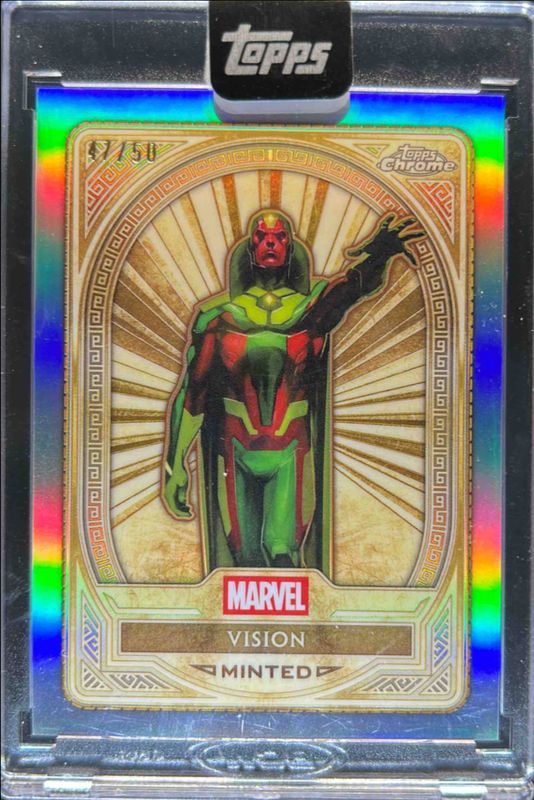 The Vision 2025 Topps Mint #100 Chrome - Refractor /100 card is 1 of 18 Vision's card variations in the 2025 Topps Mint set being tracked by Sports Card Investor, including Base, Green Mint Foil /75, Gold Foil /50, Orange Foil /25, and Black Foil /10.