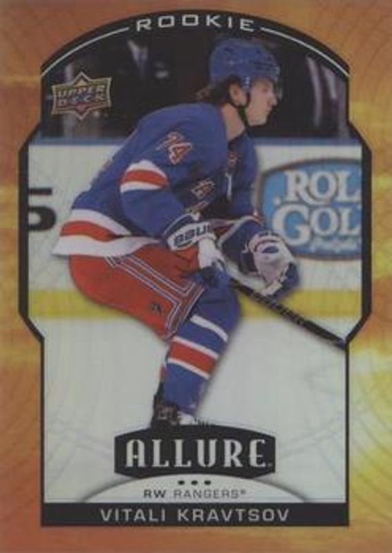 The Vitali Kravtsov 2020 Upper Deck Allure #92 Sunset Rookie card is 1 of 44 Vitali Kravtsov's card variations in the 2020 Upper Deck Allure set being tracked by Sports Card Investor, including #139 Base, #92 Base, #92 2005 Shield, #92 Black Rainbow, and #92 Blue China.