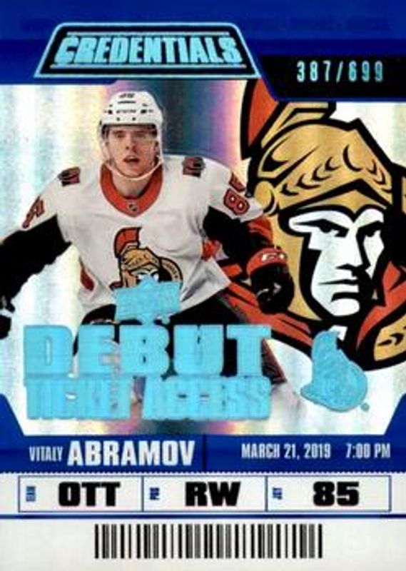 Vitaly Abramov 2019 Upper Deck Credentials #112 Base /699 Rookie RAW Price Guide
