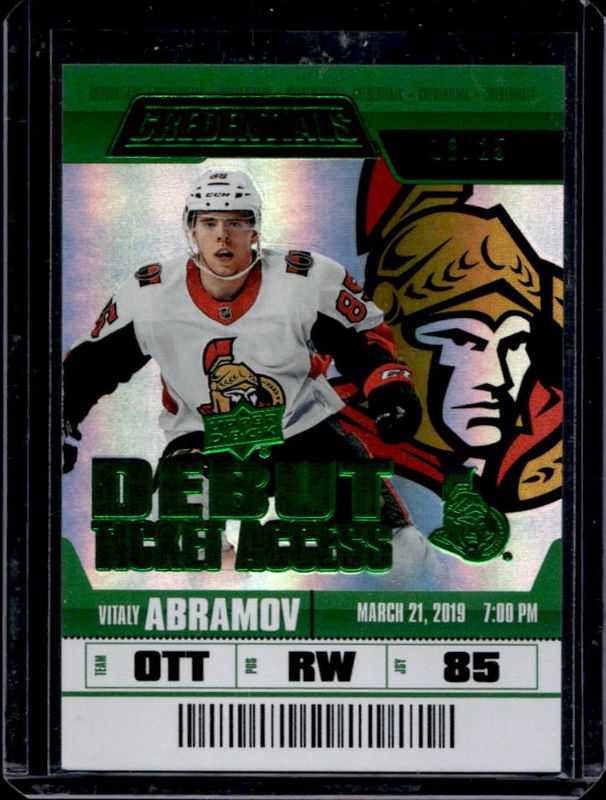 Vitaly Abramov 2019 Upper Deck Credentials #112 Green /25 Rookie RAW Price Guide