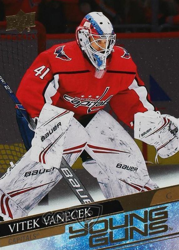 This card is 1 of 9 Vitek Vanecek's card variations in the 2020 Upper Deck set being tracked by Sports Card Investor, including Young Guns Base, Young Guns - Clear Cut, Young Guns - Clear Cut Exclusives, Young Guns - French, and Young Guns - Jumbo.