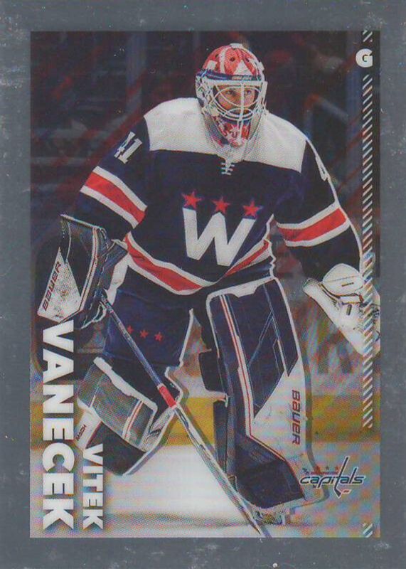 This card is 1 of 6 Vitek Vanecek's card variations in the 2022 Topps Chrome NHL Sticker Collection set being tracked by Sports Card Investor, including Refractor /99, Gold Refractor /50, Orange Refractor /25, Red Refractor /5, and Superfractor /1.