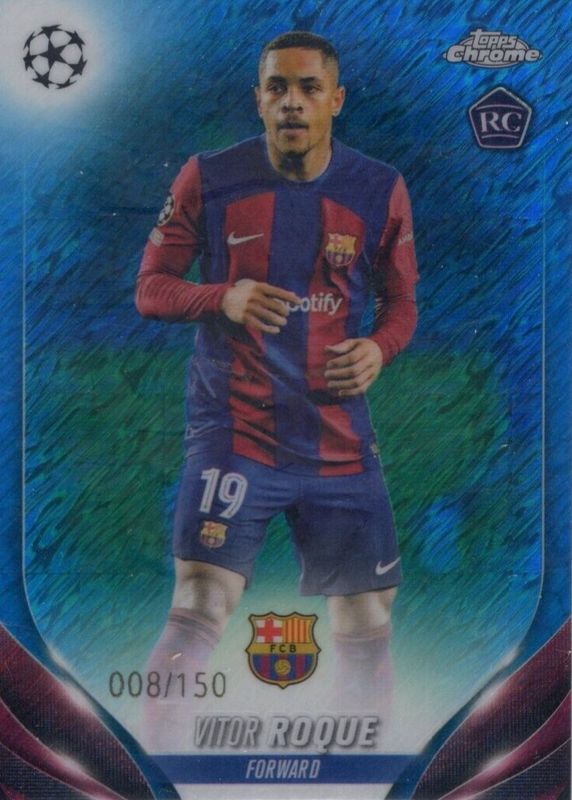 The Vitor Roque 2023 Topps Chrome UEFA Club Competitions #28 Blue Shimmer Refractor /150 Rookie card in Raw condition has not changed in price in the last 30 days and was last sold for $4.25 .