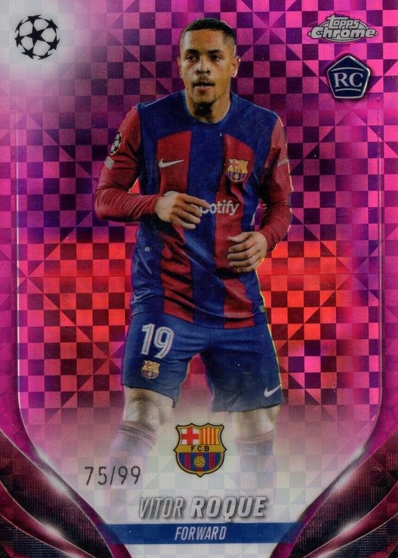 The Vitor Roque 2023 Topps Chrome UEFA Club Competitions #28 Magenta X-Fractor /99 Rookie card in Raw condition has not changed in price in the last 30 days and was last sold for $1.00 .