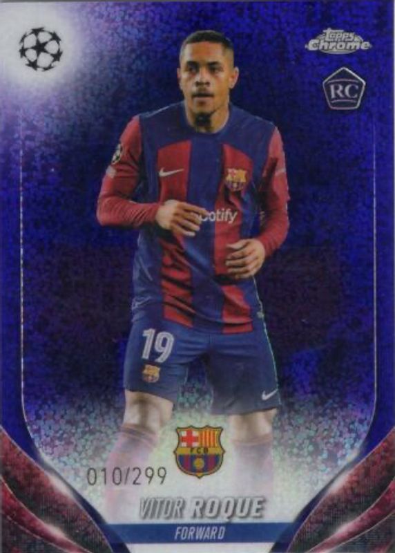The Vitor Roque 2023 Topps Chrome UEFA Club Competitions #28 Violet Speckle Refractor /299 Rookie card in Raw condition has not changed in price in the last 30 days and was last sold for $3.00 .