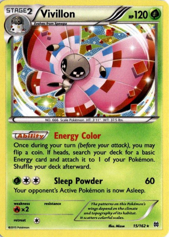 Vivillon 2015 XY: BREAKthrough #015/162 Promo (Cosmos Holo) RAW TCG (MODERATELY PLAYED) Price Guide