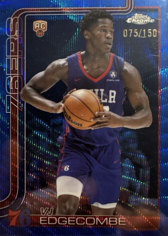 2025-26 Topps Chrome VJ Edgecombe #253 Blue Wave Refractor 91/150 RC
