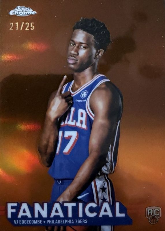 VJ Edgecombe 2025 Topps Chrome #FAN-23 Fanatical - Orange Refractor /25 Rookie RAW Price Guide