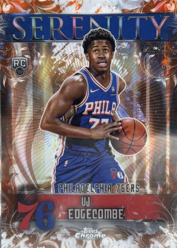 The VJ Edgecombe 2025 Topps Chrome #SY-13 Serenity - Orange Refractor /25 Rookie card in Raw condition has moved up $3.01 (+2.0%) in the last 30 days and was last sold for $153.00 .