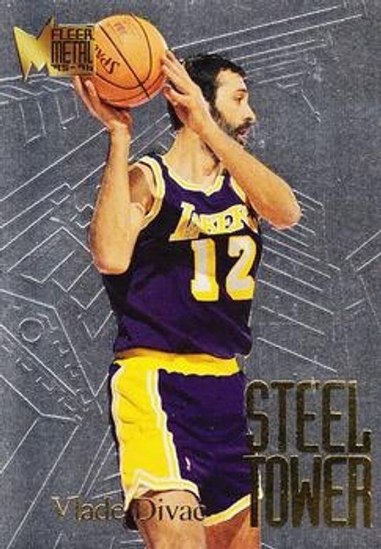 The Vlade Divac 1995 Metal #2 Steel Tower card is 1 of 3 Vlade Divac's card variations in the 1995 Metal set being tracked by Sports Card Investor, including Base, and Silver Spotlight.