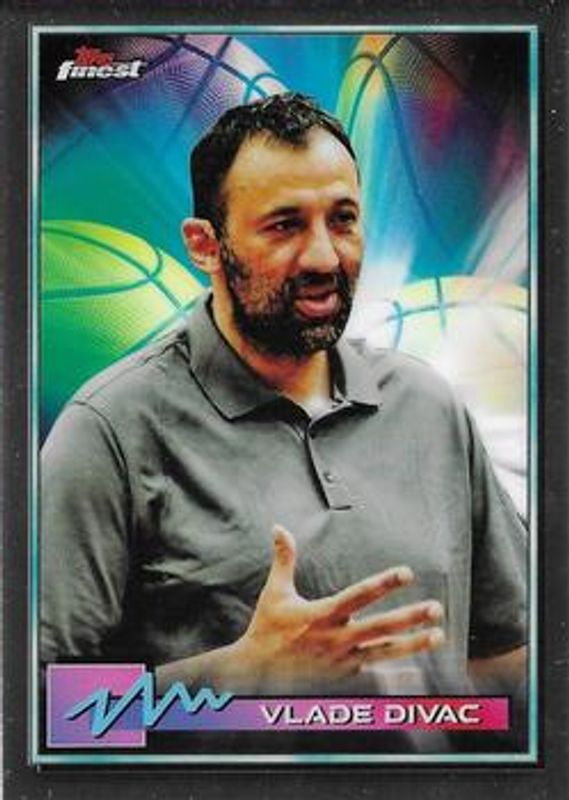 The Vlade Divac 2021 Topps Finest #12 Base card is 1 of 23 Vlade Divac's card variations in the 2021 Topps Finest set being tracked by Sports Card Investor, including Refractor, Atomic /299, Purple /250, Speckle /199, and Blue /150.
