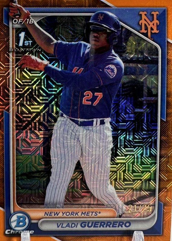 Auctions Ending Soon for Vladi Guerrero 2024 Bowman Chrome Mega Box #BCP-250 Prospects - Orange Mojo Refractor /25 (1st) RAW
