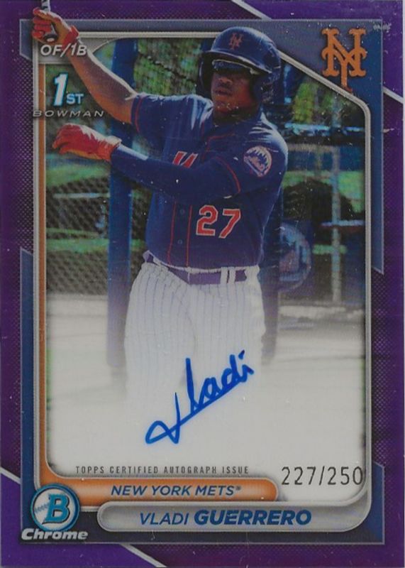 Vladi Guerrero Auto #/250 Purple Refractors 2024 1st Bowman Chrome Card Mets