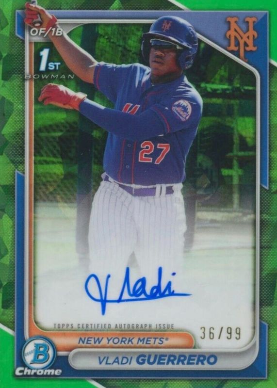 2024 Bowman Chrome Sapphire Vladi Guerrero 1st Green Refractor Auto #62/99 Mets