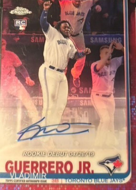 The Vladimir Guerrero Jr. 2019 Topps Chrome Update #RDA-VG Rookie Debut Autographs - Red Refractor /5 card in Raw condition has not changed in price in the last 30 days.