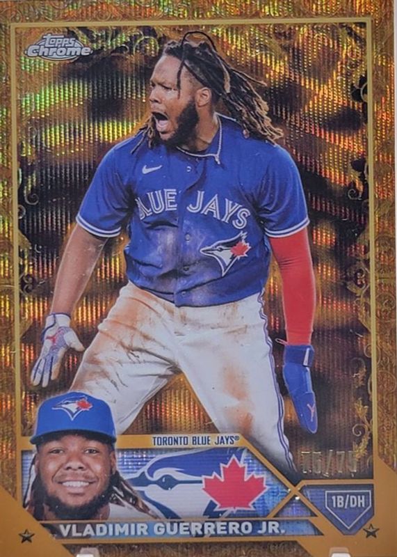 VLADIMIR GUERRERO JR. 2023 TOPPS CHROME GILDED GOLD WAVE ETCH #'D/75! Blue Jays!