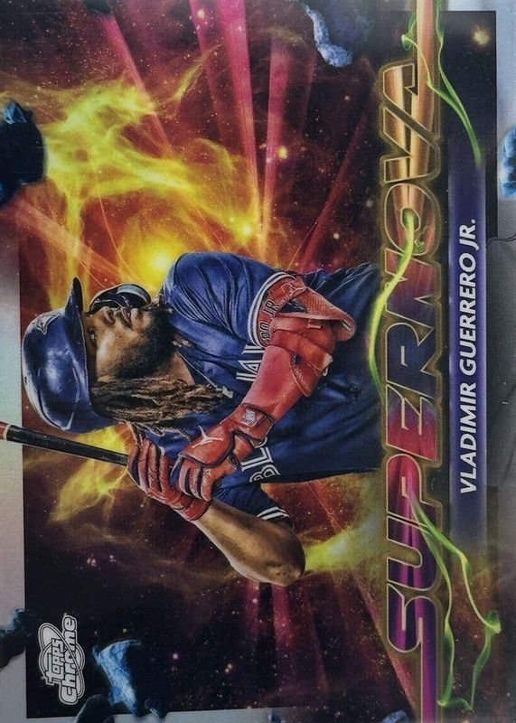 The Vladimir Guerrero Jr. 2024 Topps Chrome Cosmic #SPN-17 Supernova card in Raw condition has moved down -$3.99 (-13.8%) in the last 30 days and was last sold for $25.00 .