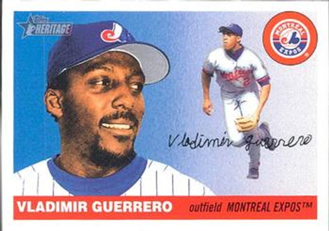 The Vladimir Guerrero Sr. 2004 Topps Heritage #449 Base card is 1 of 5 Vladimir Guerrero Sr.'s card variations in the 2004 Topps Heritage set being tracked by Sports Card Investor, including Chrome /1955, New Age Performers, Chrome Refractor /555, and Chrome Black Refractor /55.