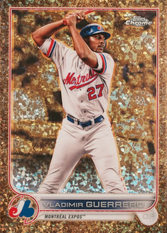 This card is 1 of 13 Vladimir Guerrero Sr.'s card variations in the 2022 Topps Gilded Collection set being tracked by Sports Card Investor, including Base /99, RayWave Gold Etch Refractor /25, Lava Gold Etch Refractor /10, Superfractor /1, and Gold Framed Hall of Famer Autographs /99.