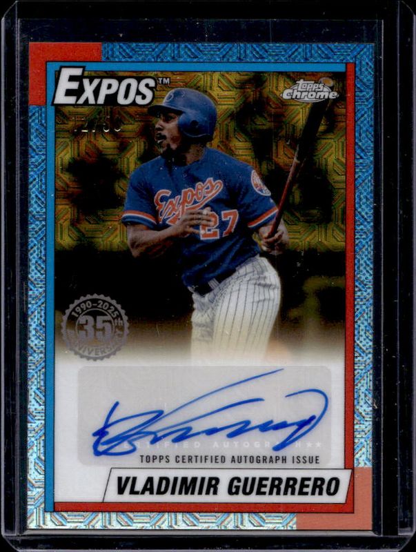 The Vladimir Guerrero Sr. 2025 Topps #90CA-VGU 1990 Baseball Chrome Silver Pack Autographs (Series 1) - Gold Refractor /50 card is 1 of 35 Vladimir Guerrero Sr.'s card variations in the 2025 Topps set being tracked by Sports Card Investor, including 1990 Topps Baseball, 1990 Topps Baseball - Pink, 1990 Baseball All-Star Autographs (Series 2), 1990 Baseball Chrome Silver Pack, and 1990 Baseball Chrome Silver Pack Autographs (Series 1).
