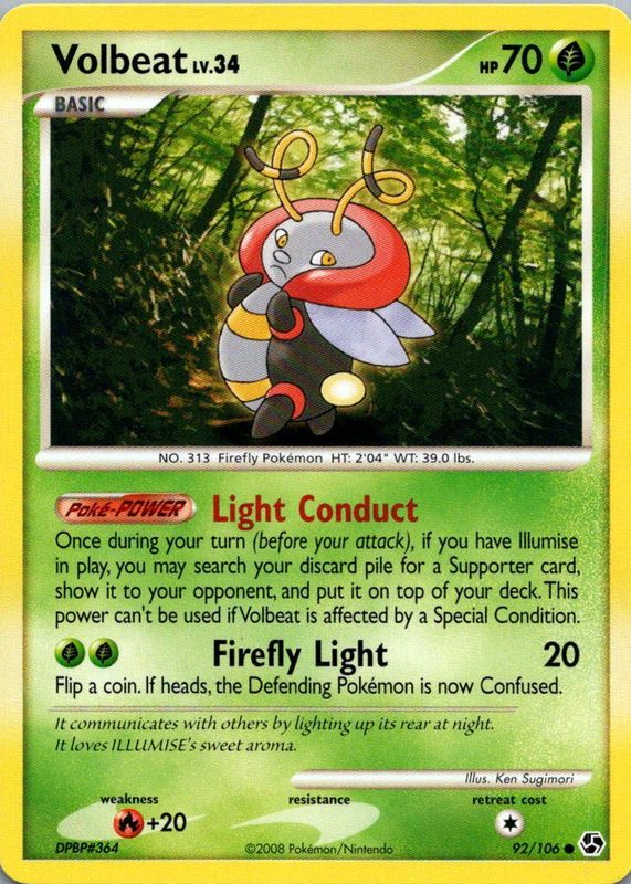 Volbeat 2008 Diamond & Pearl: Great Encounters #092/106 Base RAW TCG (LIGHTLY PLAYED) Price Guide