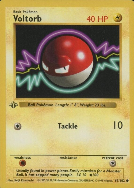 The Voltorb 1999 Pokemon Game #67 1st Edition card in Raw TCG (Lightly Played) condition has moved up $0.01 (+0.1%) in the last 30 days and was last sold for $20.00 .