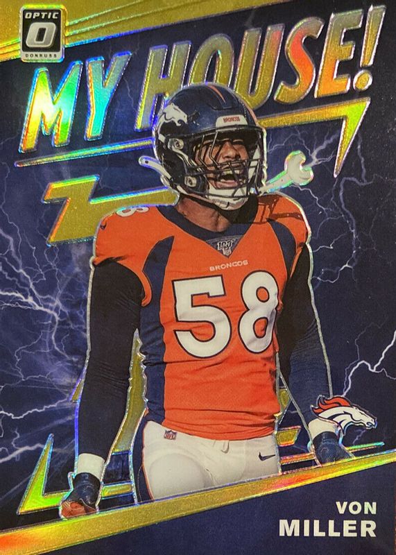 This card is 1 of 3 Von Miller's card variations in the 2020 Optic set being tracked by Sports Card Investor, including My House!, and My House! - Black Pandora /25.