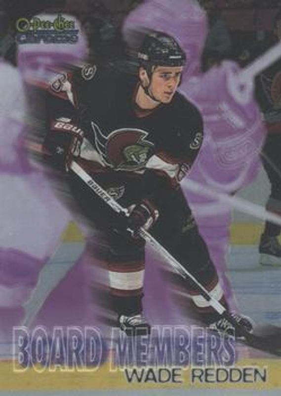 The Wade Redden 1998 O-Pee-Chee Chrome #B15 Board Members card is 1 of 4 Wade Redden's card variations in the 1998 O-Pee-Chee Chrome set being tracked by Sports Card Investor, including Base, Refractor, and Board Members Refractor.