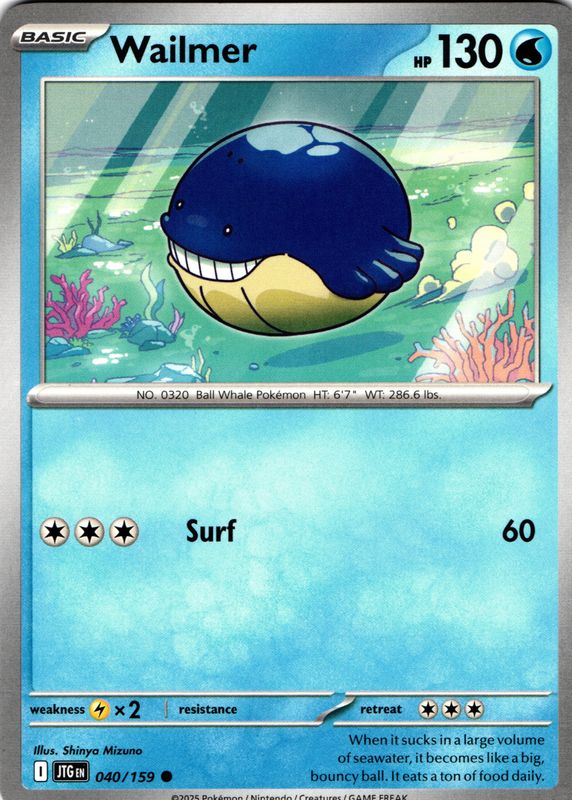 The Wailmer 2025 Scarlet & Violet: Journey Together #040/159 Base card in Raw TCG (Lightly Played) condition has not changed in price in the last 30 days.