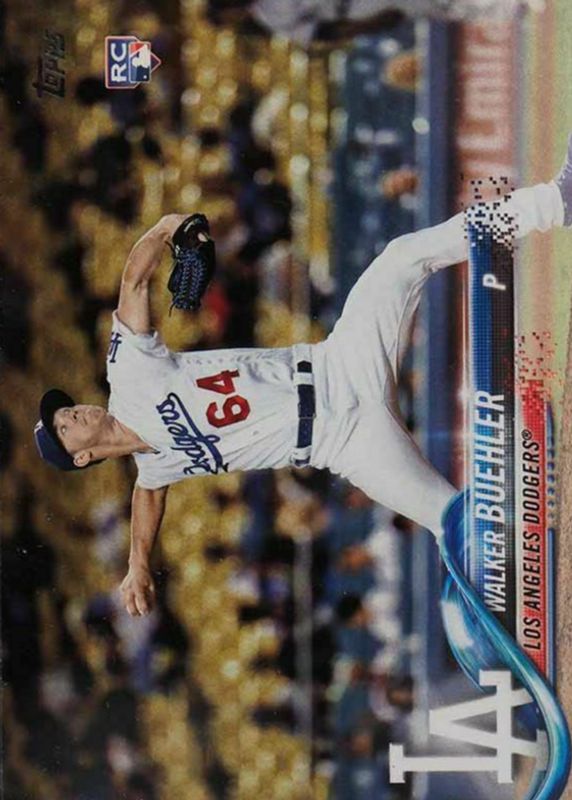 The Walker Buehler 2018 Topps #177 Base Rookie card in PSA 10 condition has moved up $10.50 (+467%) in the last 30 days and was last sold for $12.75 .