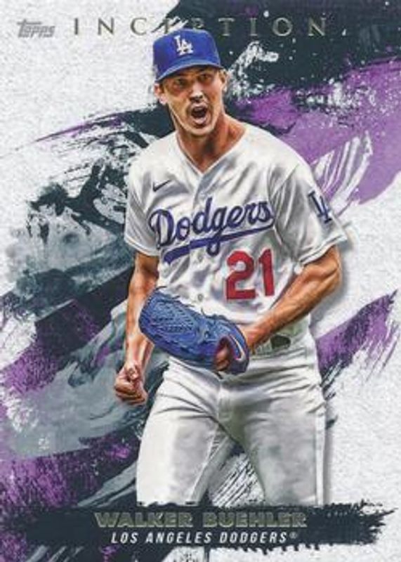The Walker Buehler 2021 Topps Inception #79 Base card is 1 of 19 Walker Buehler's card variations in the 2021 Topps Inception set being tracked by Sports Card Investor, including Green, Purple /150, Magenta /99, Red /75, and Orange /50.